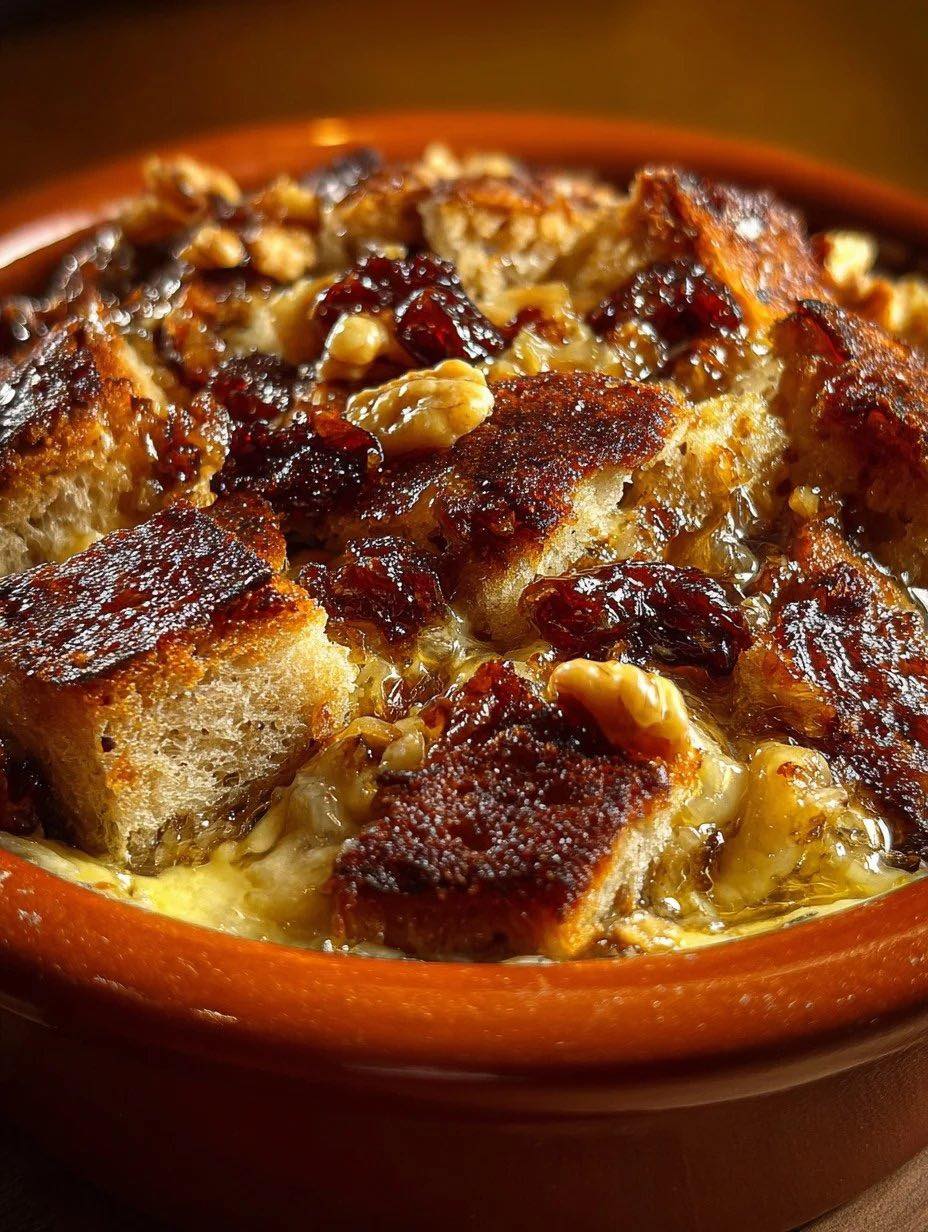 - Hornea la capirotada durante 20–30 minutos hasta que esté caliente y ligeramente dorada en la superficie.