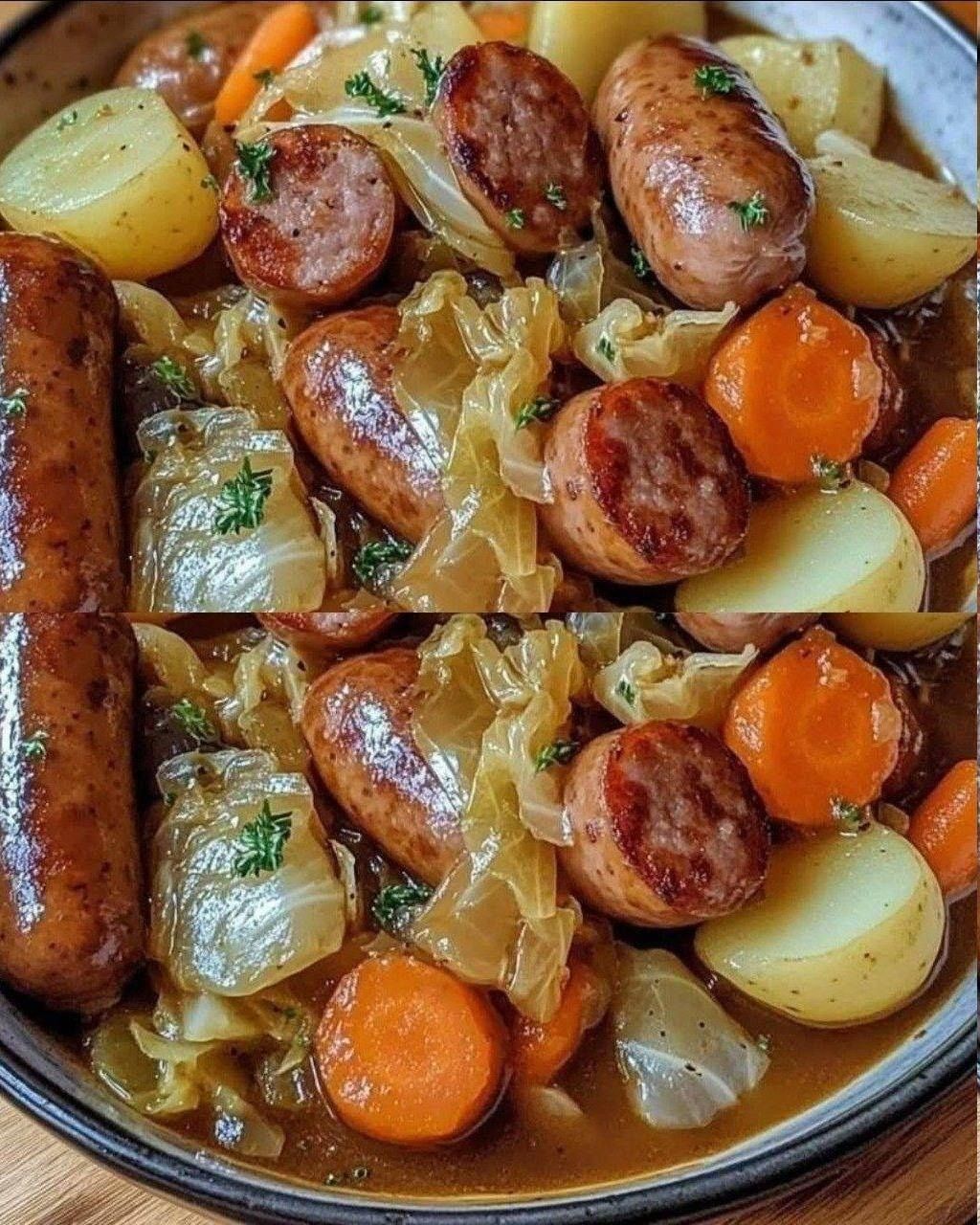 Hay platos que alimentan solo el cuerpo, pero otros alimentan el alma. El estofado de salchichas y verduras pertenece a la segunda categoría. Cada bocado es una mezcla de sabores cálidos, texturas suaves y un aroma que te hace sentir en casa.