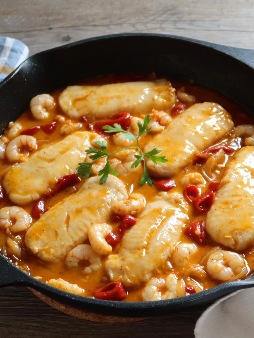 El pimiento rojo es protagonista indiscutible. Su dulzor natural y su textura carnosa combinan a la perfección con la suavidad del pescado. En La Rioja, los pimientos del piquillo y los pimientos rojos asados tienen un lugar especial en la gastronomía y suelen incorporarse a la receta.