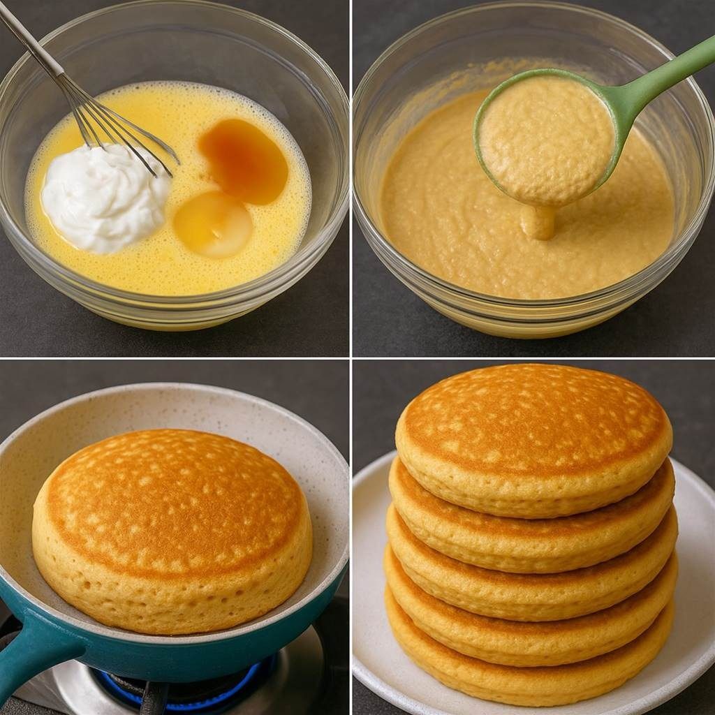 💡 Tip profesional: usar yogur a temperatura ambiente permite que la mezcla se integre mejor y que la levadura química atrape aire, logrando panqueques más altos y ligeros.