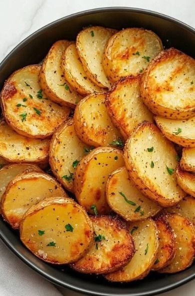 Una vez doradas y crujientes, sirve las patatas rústicas inmediatamente. Espolvorea con hierbas frescas como romero o perejil picado para un toque aromático y visual.